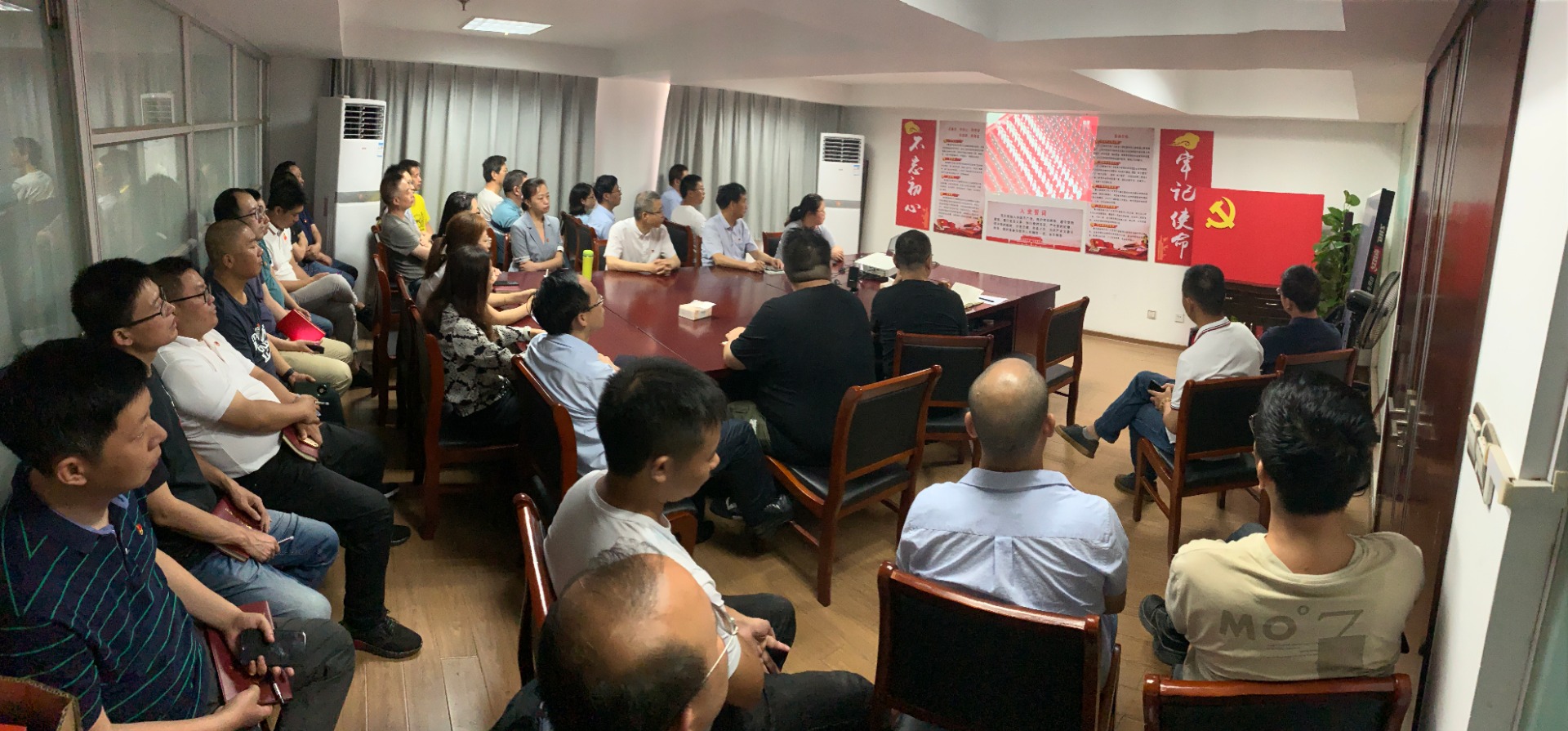 為了做好慶祝中國共產黨成立100周年大會的收看工作,公司黨辦提前一天就調試好視頻設備,確保人人能準時收看直播盛況。同時,少數未能到場的項目施工一線黨員在項目施工現場也組織收看了大會直播。大會在黨員群眾代表中引發熱烈反響。